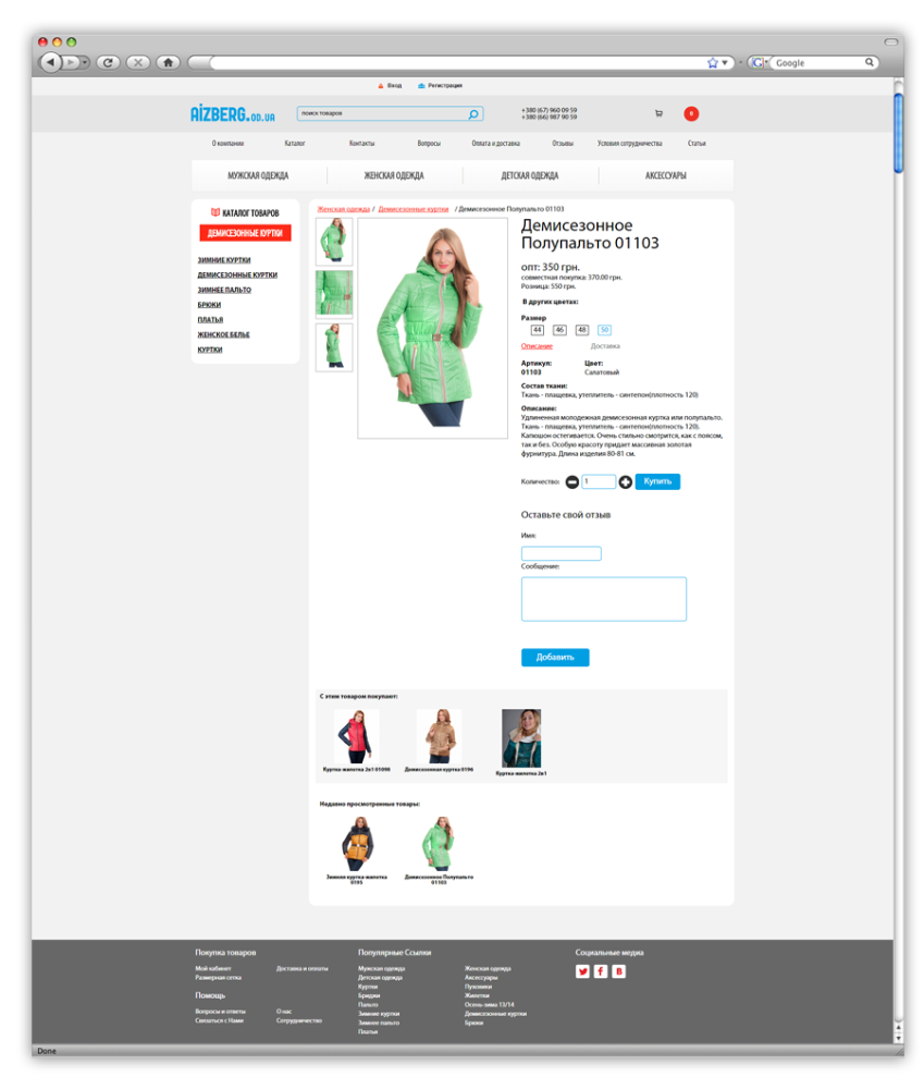 Aizberg.od.ua - современный оптово-розничный интернет-магазин обуви и одежды.Поставленная задача