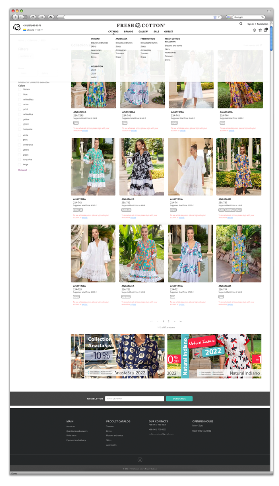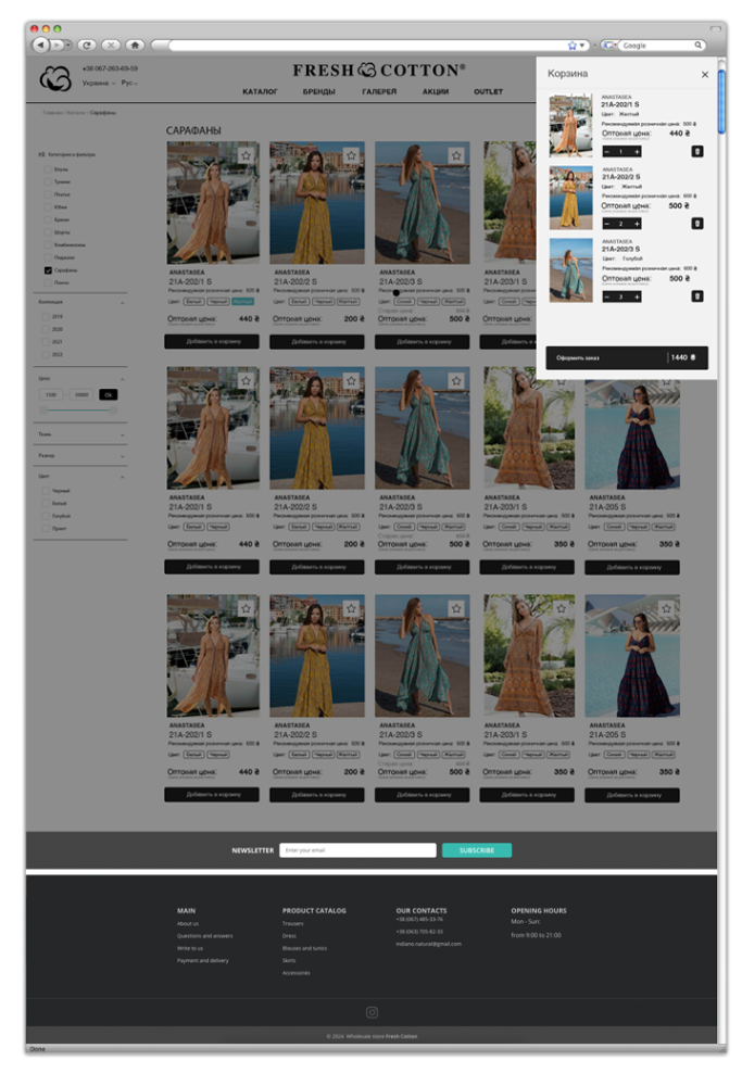 Наше решение позволило Fresh Cotton эффективно представить свою продукцию и обеспечить удобство покупок для клиентов, способствуя увеличению продаж и улучшению пользовательского опыта.