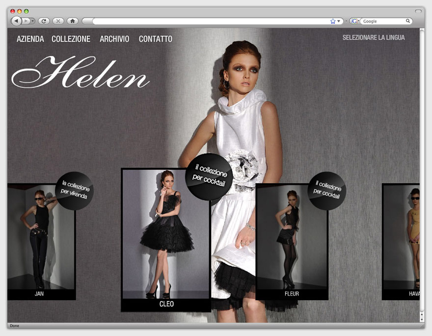 Итальянская компания «Helen» предлагает своим клиентам эксклюзивную женскую одежду и аксессуары класса Luxury. Дизайнеры компании черпают вдохновение у природы, поэтому для создания уникальных образов, сочетающих в себе новейшие тенденции мировой моды и неповторимые изюминки фирменного стиля компании, используются только высококачественные материалы натуральных оттенков. Ассортимент продукции представлен коктейльными платьями, одеждой для отдыха и деловыми костюмами, а также сумками и аксессуарами ручной работы.