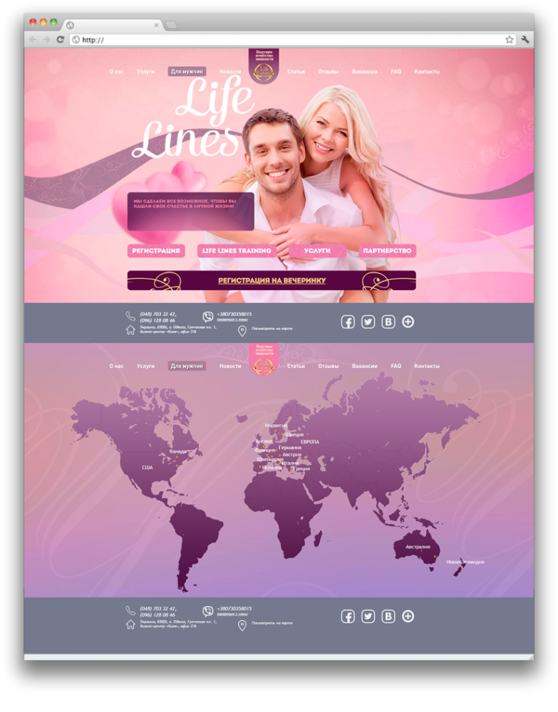Компания Life Lines была основана в 2004-м году и уже почти 10 лет успешно работает на международном рынке. Основным направлением деятельности компании являются международные знакомства.