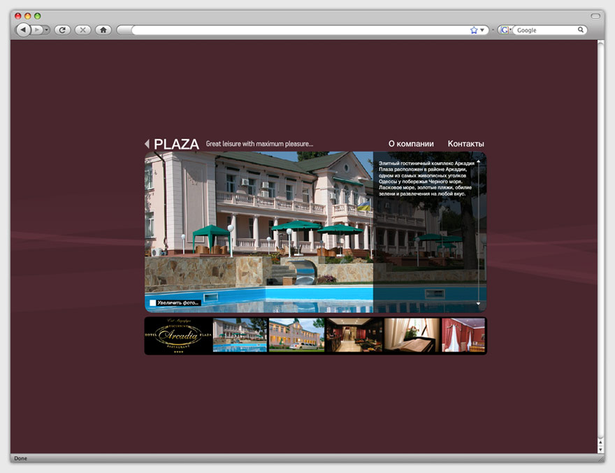 Сайт выполнен в мягких, неназойливых тонах, которые являются фоном для текстового контента. Главная страница ресурса выполнена с использованием мультимедиа и позволяет осуществить переход к интересующему объекту. Каждый раздел содержит исчерпывающую информацию о выбранном заведении. Информация структурирована и разбита на логические блоки, что облегчает ее поиск и восприятие.
