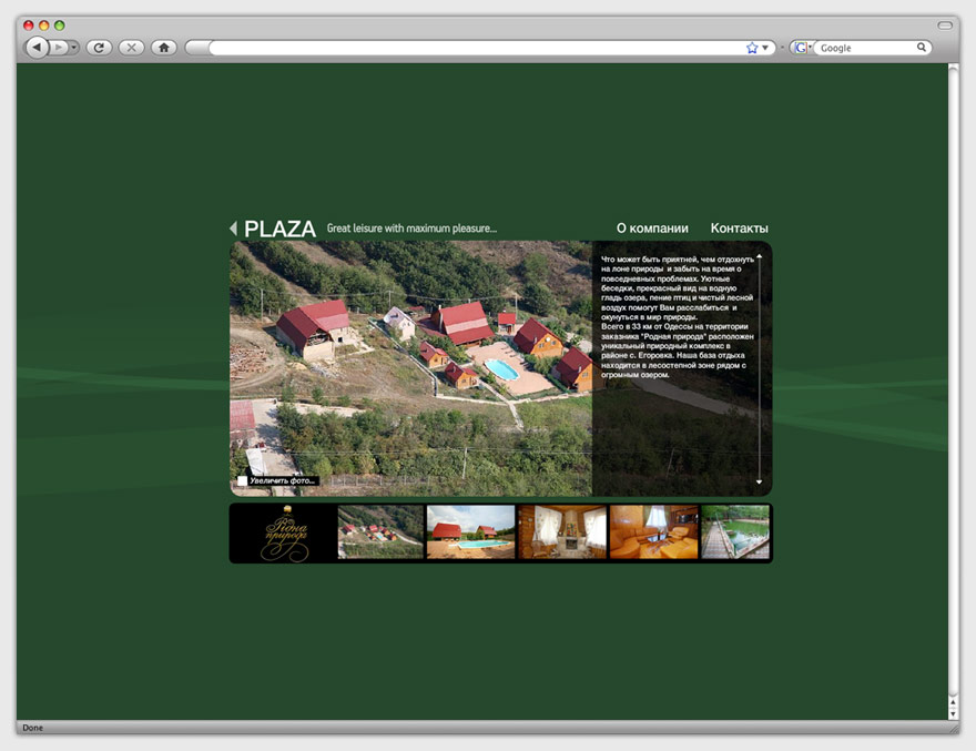 Информация сайта представлена на русском и английском языках. Посетители могут узнать об особенностях отдыха на выбранном объекте. Также на сайте можно ознакомиться с историческими данными о местности и прейскурантом. Каждый материал снабжен красочными фотографиями. Обилие графического контента не снижает скорость работы сайта.