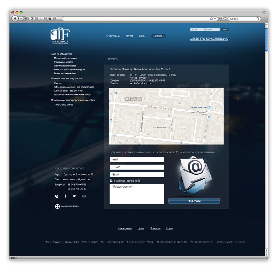 Разработать дизайн сайта для серьезной компании предоставляющей услуги по оценке имущества.