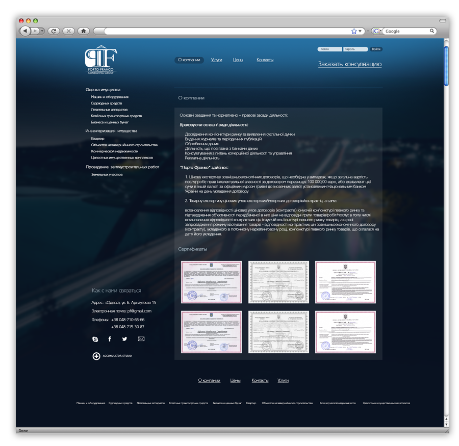 Результатом нашей работы, нам удалось создать серьезный и современный дизайн сайта, при этом сохранив удобство пользования и логичность представления информации для посетителей.