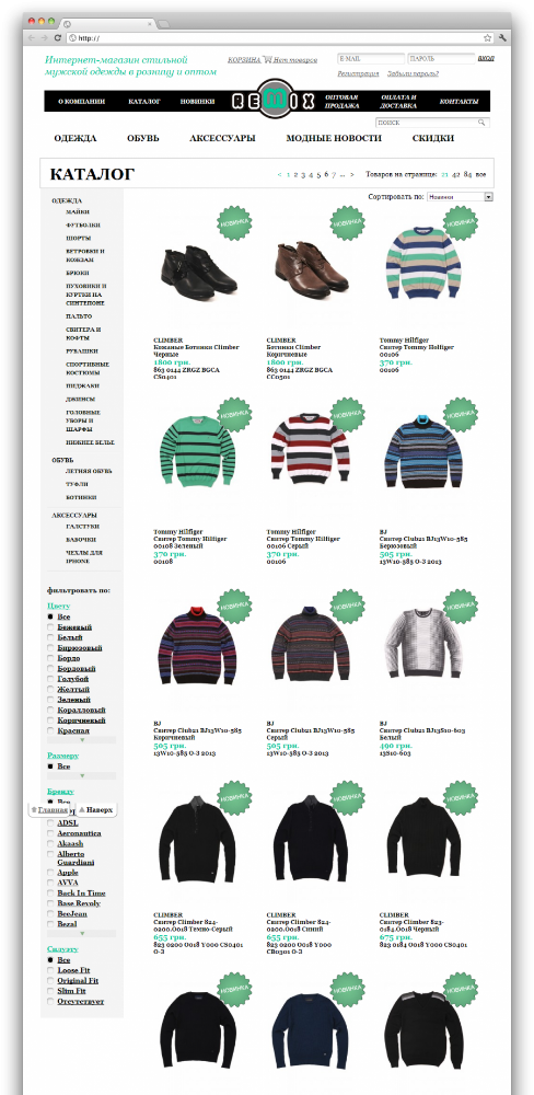 Необходимо было создать сайт интернет-магазина с понятным интерфейсом и удобной навигацией. Стиль ресурса должен был ориентирован на современных мужчин, которые предпочитают яркую и удобную одежду. Информационное наполнение сайта было призвано ознакомить посетителей с ассортиментом товаров и дать возможность сделать заказ, не отходя от монитора.