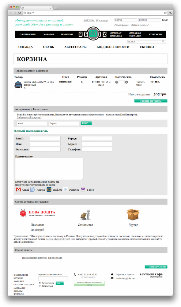 Сайт отражает специфику компании, привлекает внимание потребителя и побуждает сделать покупку. Интернет-магазин прост в использовании, покупатель делает заказ в считанные минуты. Для оформления заказа регистрация не является обязательной.