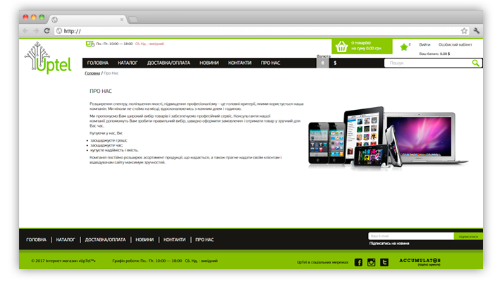 Задача, поставленная перед нашей студией, заключалась в создании площадки для успешного продвижения и продажи товаров Заказчика.