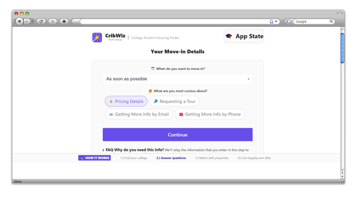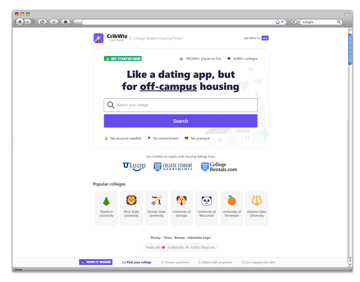 CribWiz - платформа для поиска студенческого жилья, а также для размещения объявлений о сдаче жилья в аренду.