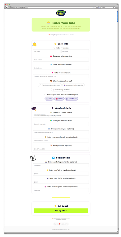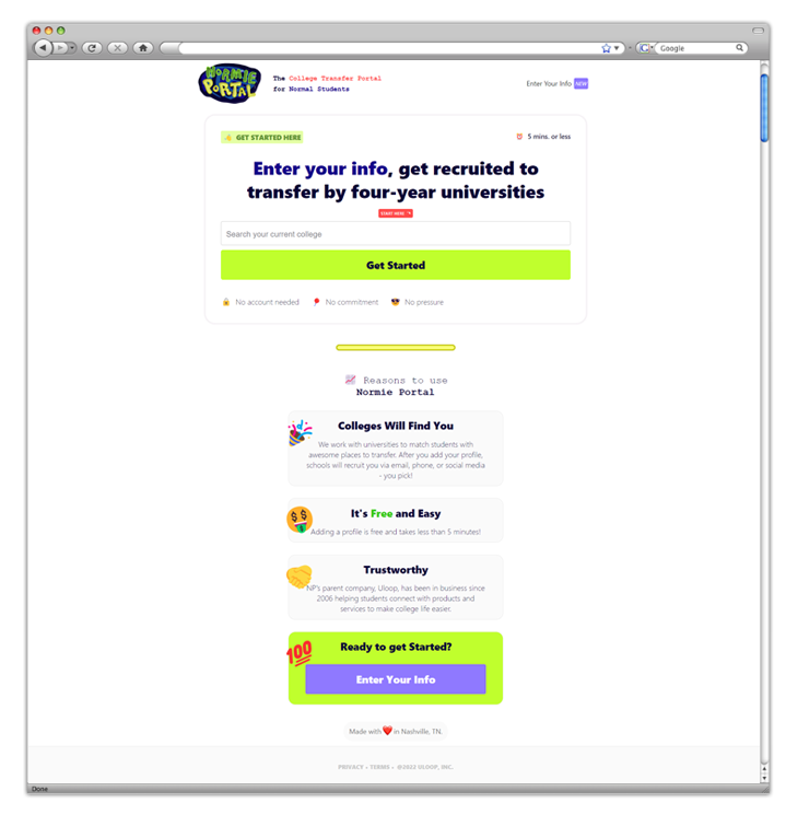 Normie Portal - платформа, которая помогает студентам перевестись из одного университета в другой. Для этого студенту необходимо заполнить анкету и ожидать, когда университет свяжется с ним.