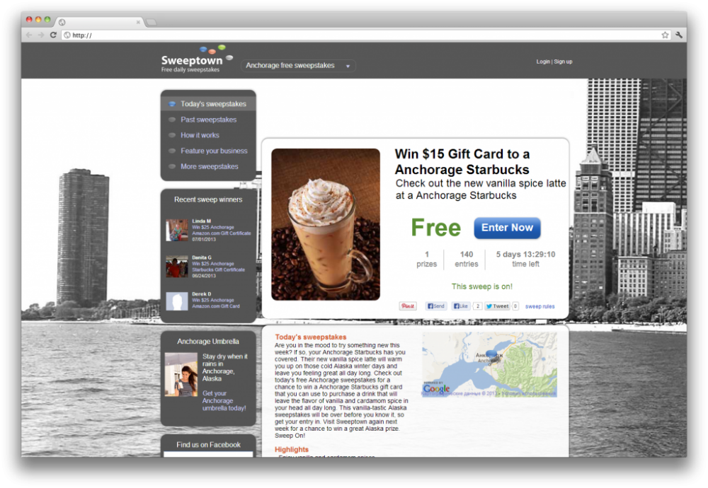 Бесплатный тотализатор, который предлагает лучшие цены и бесплатные предложения от местных отелей, баров, ресторанов, театров, кино и других мест. Здесь можно зарегистрироваться и выиграть скидки от местных заведений. Chicago, U.S.
